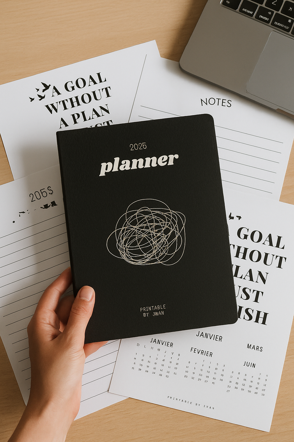 You'll get a beautiful 43-page printable planner for 2025, with notes, quotes, and KDP-ready pages.
